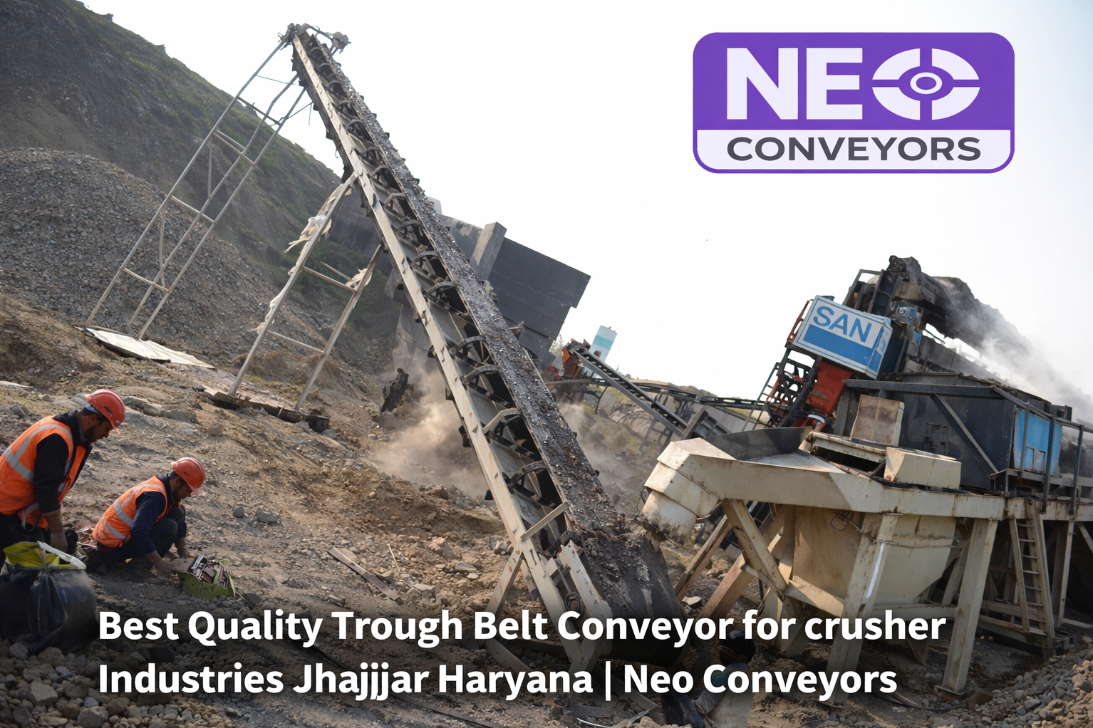 Neo Conveyors supplies best-quality trough belt conveyors for crusher industries in Jhajjar, Haryana, engineered for high capacity, abrasion resistance, and continuous duty. Ideal for stone crushing, mining, aggregates, cement, and bulk material handling, our conveyors ensure stable tracking, reduced downtime, and long service life.