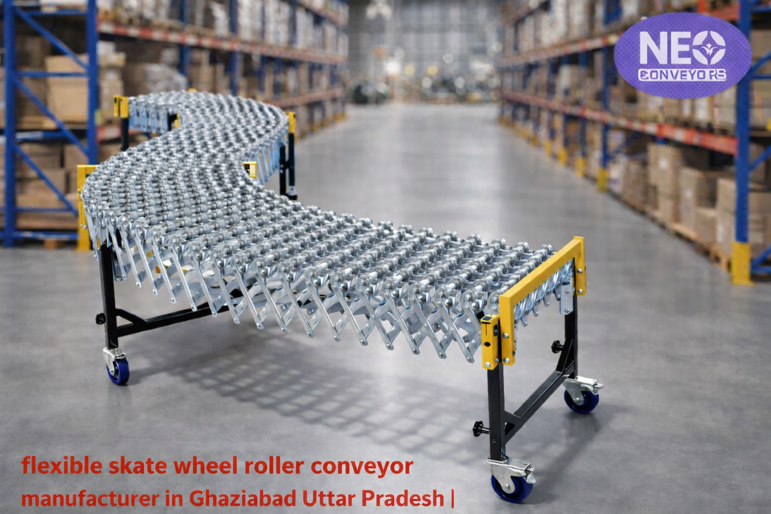Neo Conveyors is a trusted flexible skate wheel roller conveyor manufacturer in Ghaziabad, Uttar Pradesh, offering lightweight, expandable, and easy-to-move conveyors for warehouses, courier hubs, e-commerce, FMCG, and logistics industries.