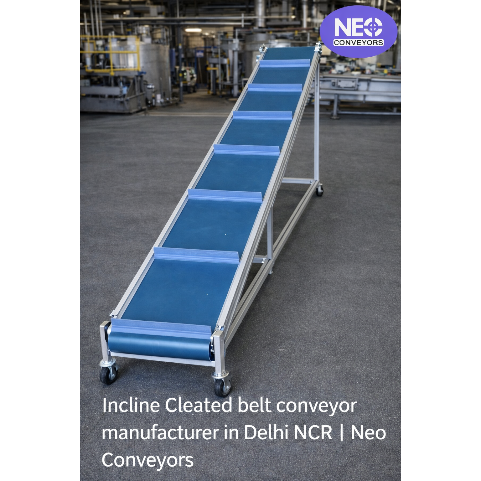 Neo Conveyors is a trusted incline cleated belt conveyor manufacturer in Delhi NCR, offering custom-designed solutions for food processing, FMCG, packaging, agriculture, bulk material handling, and manufacturing industries.