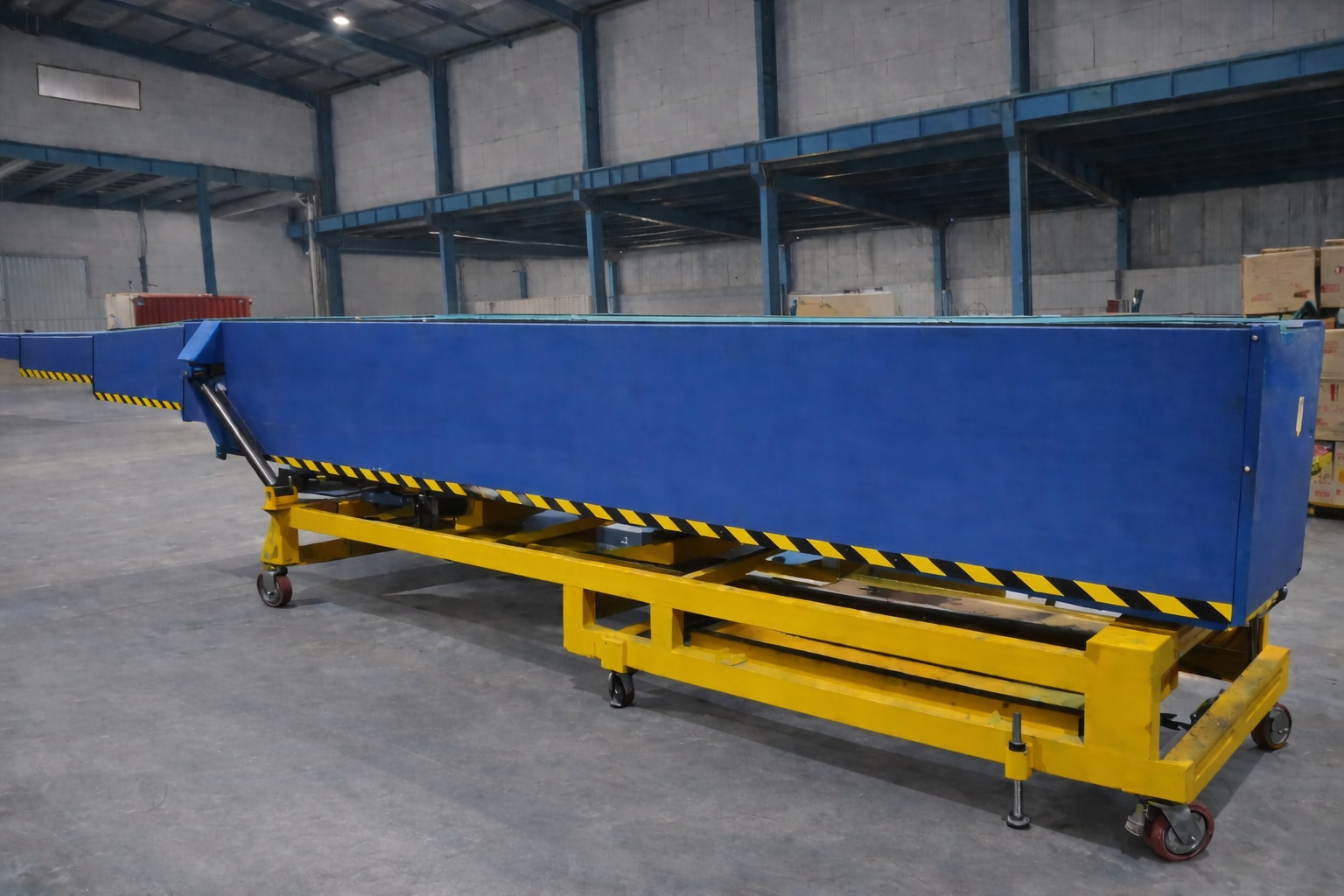 A telescopic belt conveyor is an extendable conveyor system designed primarily for truck loading and unloading operations. It consists of multiple nested conveyor sections that slide in and out (like a telescope), allowing operators to adjust the length based on the vehicle position.